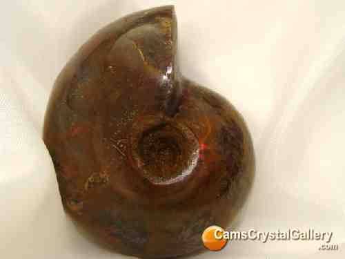 This specimen of ammonite is too thick to be semi-transparent, but it still looks amazing. There are shimmers throughout the piece adding its own character.
