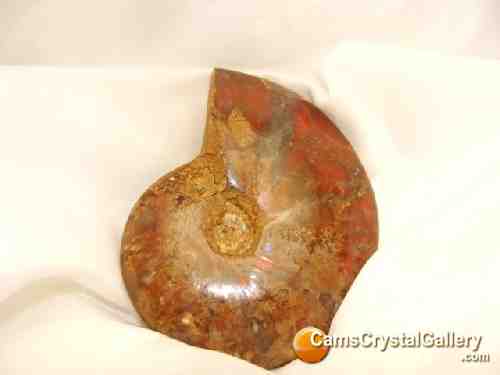 This Ammonite is spectacular! It has red irridescent faces and is in great condition.