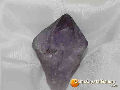 A nice single amethyst point that has good color and very minimal damage. There is some cacoxenite inclusions and has good color. It is thought that amethyst can help heal personal losses and grief. Amethyst has a gently sedative energy that promotes peacefulness, happiness, and contentment. It also brings emotional stability and inner strength, and can enhance flexibility and cooperation. Amethyst can help get rid of addictions (alcohol, drugs, smoking, etc.) and compulsive behaviors of all kinds.