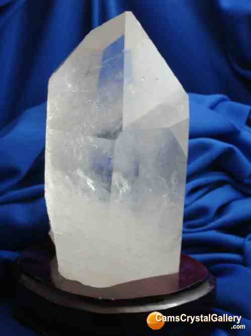 This is a 100% natural Quartz point! There are record keepers all down the sides and there are also rainbows throughout the piece. It also comes with the wooden stand seen in the picture!