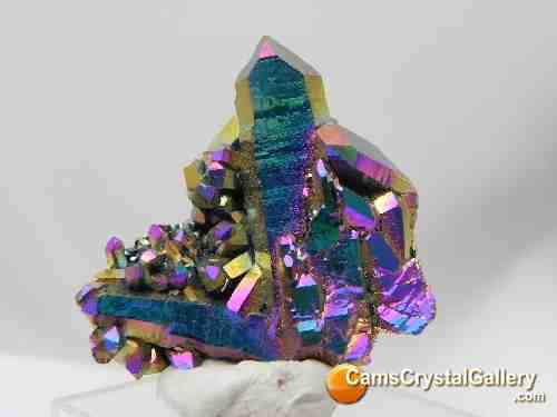 No this is not a naturally occurring specimen. The quartz is natural and has gone through a special process that has bonded titanium to the surface of the quartz. It is very durable and will not wear off. The back is flat and would make a nice wrapped piece.